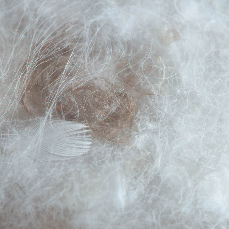 Daunen sind die weichen, flauschigen Federchen, die sich direkt unter dem Federkleid der Vögel befinden. Sie unterscheiden sich deutlich von Federn: Während Federn eine feste Federkielstruktur haben, sind Daunen federlos und bilden durch ihre dreidimensionale Struktur kleine Luftpolster. Diese speichern Wärme und lassen gleichzeitig Luft zirkulieren – ideal für ein ausgeglichenes Schlafklima.