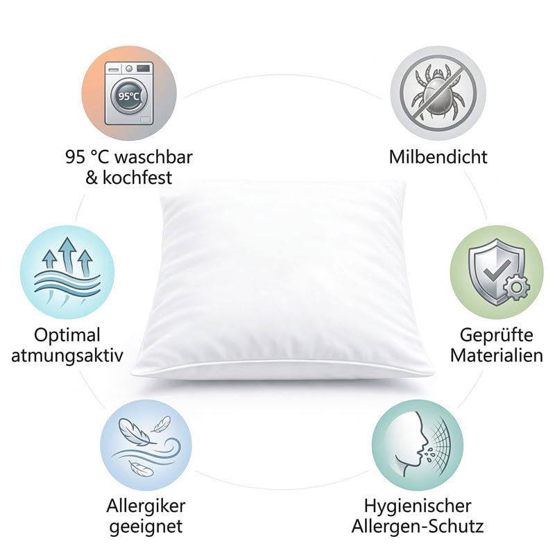 Dieses Produkt ist ein funktionaler Schutzbezug für das Kopfkissen. Es wurde für Schutz und Hygiene entwickelt, nicht als rein dekorativer Alltagsbezug.